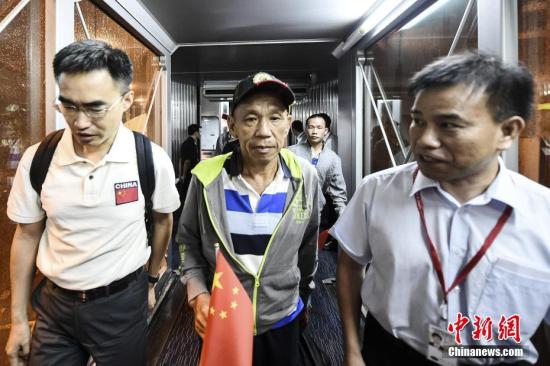 10月25日,遭索馬里海盜劫持的阿曼籍臺灣漁船“NAHAM3”上的9名中國船員抵達廣州。2016年10月22日,遭索馬里海盜劫持的阿曼籍臺灣漁船“NAHAM3”上的9名大陸船員、1名臺灣船員和其他國家船員26名幸存人員全部安全獲救,并在聯合國有關機構協助下于23日抵達肯尼亞。25日,除一名大陸船員因健康原因暫留肯尼亞接受進一步治療外,其余9名獲救中國船員乘坐南航班機返回廣州。中新社記者 鐘欣 攝
