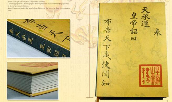 據(jù)悉,該筆記本上面寫有“奉天承運(yùn) 皇帝詔曰”等字,封面與封底有淺淺一條金龍為底。(王思羽)