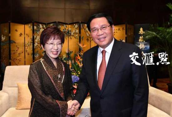 10月30日晚,中共江蘇省委書記李強在南京會見國民黨主席洪秀柱。(交匯點記者 朱江攝)