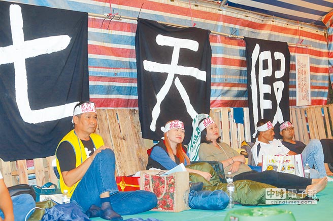 目前在“立法院”持續(xù)有勞團(tuán)成員以絕食靜坐方式,盼民進(jìn)黨“立院”黨團(tuán)能主動(dòng)撤案。(圖片來源:臺(tái)灣《中時(shí)電子報(bào)》)