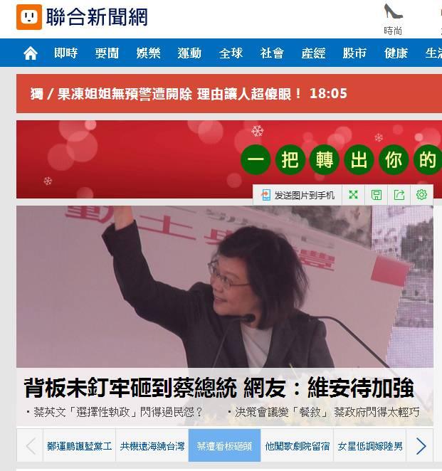 臺灣媒體說,隨扈見狀快速上前將背板扶起,所幸該“肇事”背板材質較軟,小英并無大礙,但受到驚嚇。