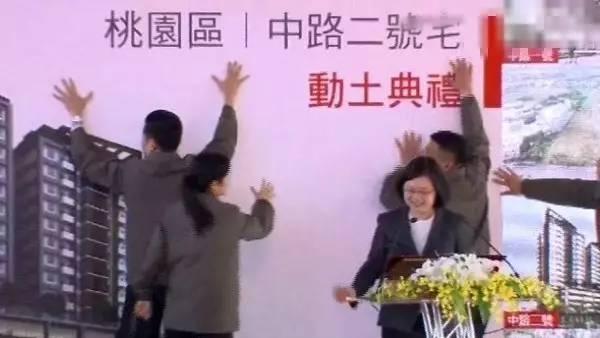 事后,蔡英文自嘲,“剛才小朋友(表演)的興奮,讓后面的紙板也興奮起來了”。以緩和現場氣氛。蔡英文致詞完畢后,也與現場貴賓一同進行動土儀式 ,工作人員則急忙沖上舞臺,趕緊將背板重新固定。