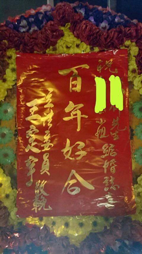 臺灣聯合新聞網16日稱,網絡名人“A濫”林雅強在臉譜分享一張祝賀婚禮的照片。這是民進黨“立委”王定宇祝賀新人結婚時送給對方的:賀詞是“百年好合”,但署名處卻寫著“立法委員”王定宇“敬挽”。而“敬挽”是用于喪事,對長輩用“敬挽”,對晚輩則用“挽”即可。