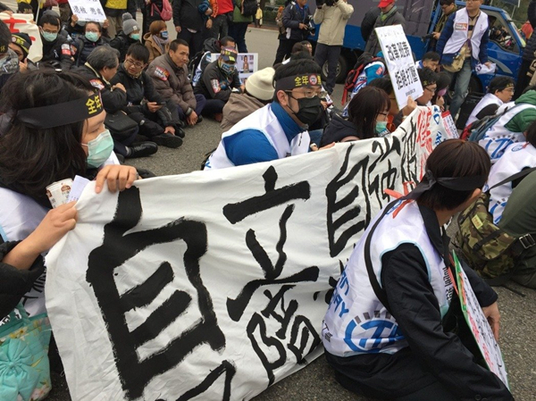 臺鐵工會2月9日在蔡英文辦公室前抗議。(圖片來源:臺灣《聯合報》)