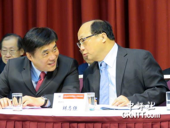 郝龍斌(左)獲胡志強(右)相挺,加上與朱立倫、馬英九友好,給予外界“馬郝立強”重現江湖的期待。(圖片來源:中評社)