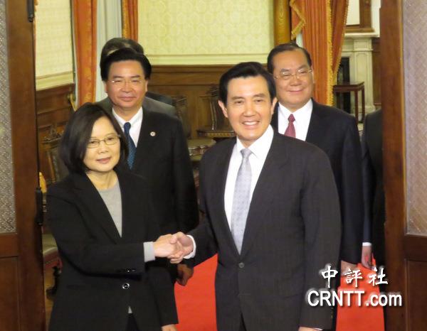 前臺灣地區領導人馬英九和臺灣地區領導人蔡英文握手(圖片來源:中評社)