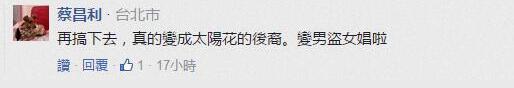 有網友表示,“臺灣至少有一般的人知道臺軍事什么德行,弄這種東西只是多新的笑柄”,還有網友表示,“與其花錢拍偶像劇,不如花錢去醫院治好腦袋”,“再這樣搞下去,真成太陽花的后裔了,變男盜女娼了”。
