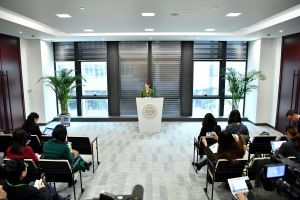 資料圖片:3月23日,亞投行新聞發言人歐若拉在發布會上介紹情況并答記者問。新華社記者 李鑫 攝