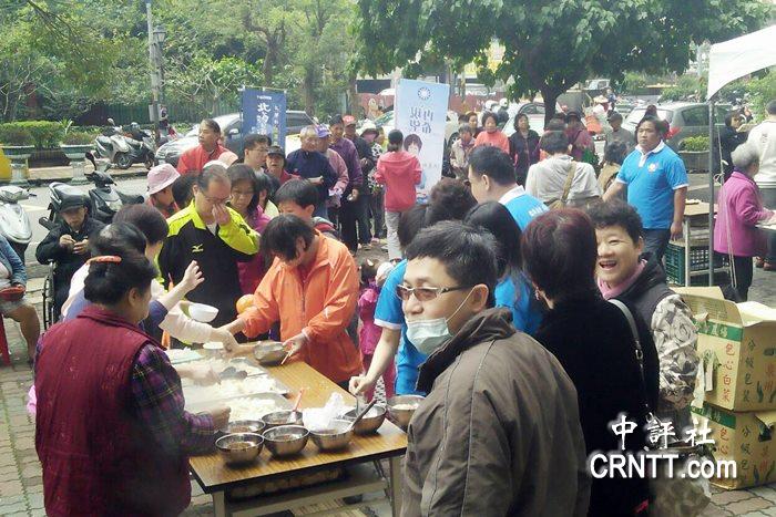 中國國民黨主席洪秀柱競選連署宣傳車“柱你幸福號”3日駛進桃園八德,現場舉辦包水餃活動,有早期眷村人情味,也幫助了高麗菜農。(圖片來源:中評社)