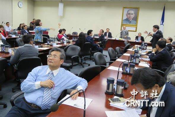 少了洪秀柱坐鎮(zhèn),5日的國民黨中常會(huì)大亂,國民黨中常委厲耿桂芳(左)與“挺吳派”中常委江碩平(右)爭論不休。(圖片來源:中評(píng)社)