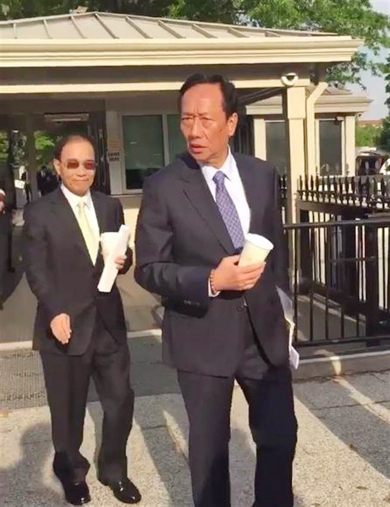 《華盛頓郵報》記者在推特發布郭臺銘進白宮的影片截圖。