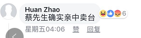 其中一條評論諷刺“蔡正元確實親中賣臺”,遭到眾多網友聲討。盡管該評論用的是簡體字,有網友稱,這肯定是島內綠營支持者所為,直呼“用真實身份吧”。