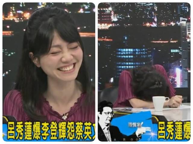 被問到“呂秀蓮怨蔡英文不找她”,高嘉瑜數度笑場,最后甚至痛苦到說不出話來,直接笑趴在桌上。(臺媒圖)