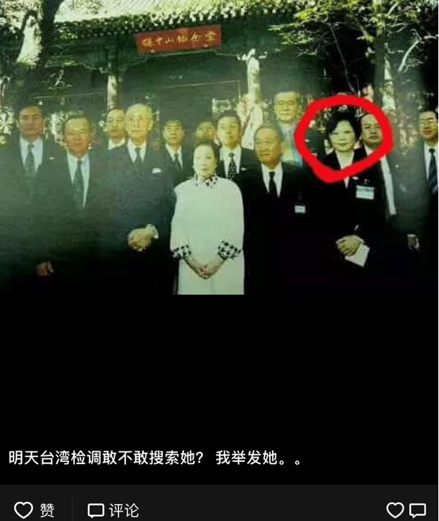 而對于外界懷疑民進(jìn)黨此舉是因?yàn)樾曼h剛剛完成對大陸的“創(chuàng)新之旅”,王裕慶則找出蔡英文早年來大陸訪問的照片:“明天臺(tái)灣檢調(diào)敢不敢搜索她?我舉發(fā)她。”一同被貼出的還有陳水扁、呂秀蓮等“臺(tái)獨(dú)”人士早年在大陸的照片。