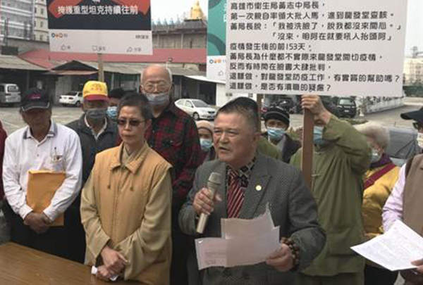 高雄龍發(fā)堂今(23)日召開記者會,表示將控告高雄市衛(wèi)生局長黃志中誹謗、妨害名譽。(圖片來源:臺灣“中國時報”)