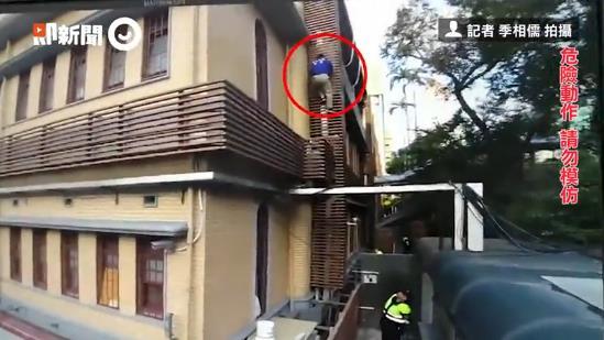 抗議當日,繆德生攀爬建筑物跌落受傷。(臺媒報道截圖)