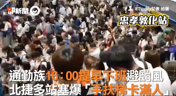 臺北地鐵站乘客爆滿。(圖片來源:臺灣“東森新聞云”)