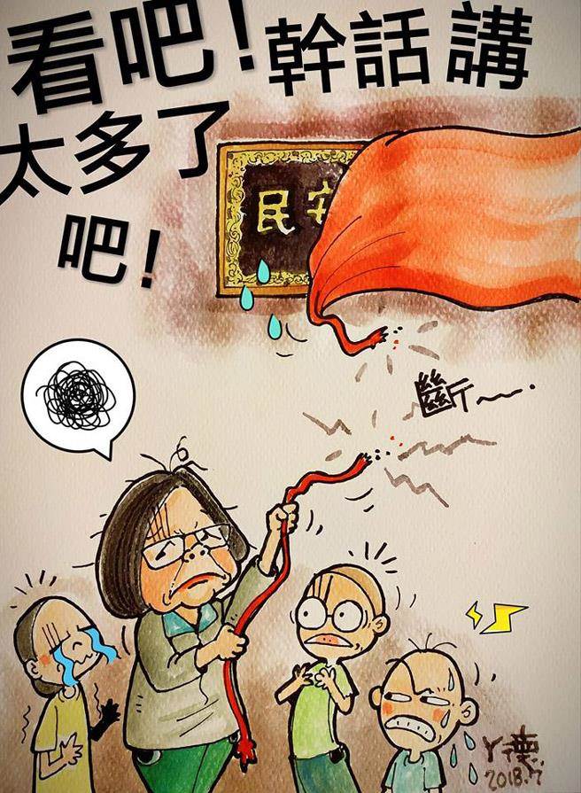 中國(guó)臺(tái)灣網(wǎng)7月16日訊 據(jù)臺(tái)灣《中時(shí)電子報(bào)》報(bào)道,臺(tái)灣地區(qū)領(lǐng)導(dǎo)人蔡英文13日到臺(tái)南市佳里金唐殿贈(zèng)匾“郅善安民”,在揭匾時(shí)她所拉的紅繩居然斷掉,現(xiàn)場(chǎng)氣氛尷尬。資深氣象主播李富城在臉譜網(wǎng)(facebook)發(fā)指,天恕人怨,不詳之兆!鞍⒌侣嫛狈劢z專頁則曬漫畫酸說“看吧!干話講太多了吧!”讓網(wǎng)友不禁笑成一團(tuán)。