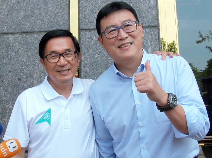 陳水扁(左)同意擔任民進黨臺北市長參選人姚文智(右)競選最高顧問。(圖片來源:臺灣《聯合報》)