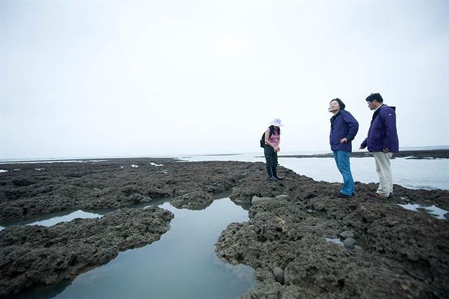 蔡英文于2013年4月20日發(fā)了一張照片,圖說寫道“在海岸線的風(fēng)雨中,我拜訪了桃園新屋溪口的藻礁。相對于珊瑚礁是‘動物’造礁,藻礁則是‘植物’造礁,生長速度比珊瑚礁更慢,是全球難能可貴的生態(tài)。‘觀新藻礁’內(nèi)含豐富藻類,還有小螃蟹跟其他生物前來覓食,這些小生物也更進一步吸引了保育類鳥群,讓這里的生態(tài)體系豐富而多元。”