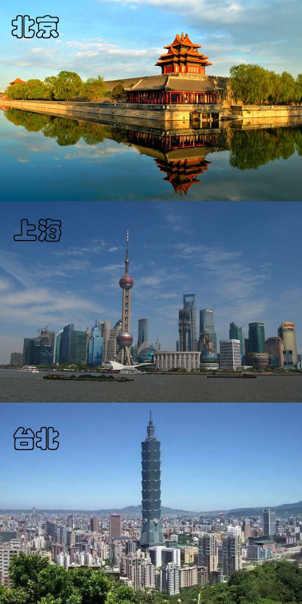 北京、上海、臺北城市一角。(網絡圖合成)