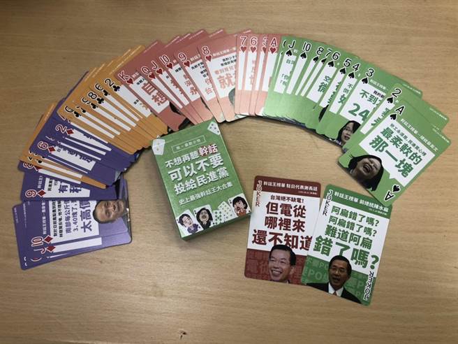 國民黨今推出新一波文宣品“民進(jìn)黨干話撲克牌”。(圖片來源:臺灣《中時電子報》)