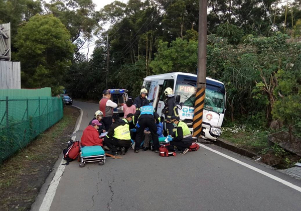 中國(guó)臺(tái)灣網(wǎng)11月21日訊 據(jù)臺(tái)灣《聯(lián)合報(bào)》報(bào)道,新北市政府一輛免費(fèi)接駁巴士,今天(21日)清晨6時(shí)56分在淡水區(qū)下圭柔山道路跌落路旁小水溝自撞電線桿,車上6名乘客多半都是70歲以上的阿公、阿嬤。