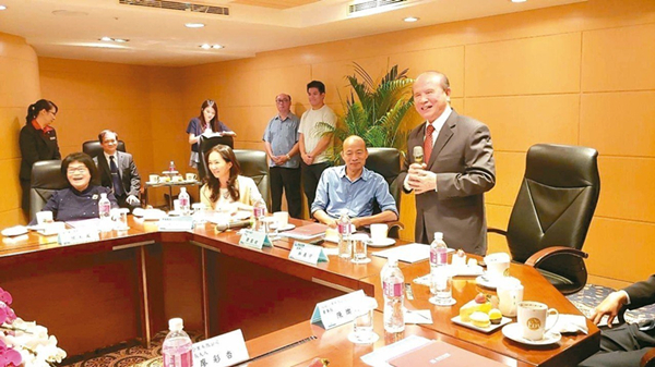 準高雄市長韓國瑜(右二)昨天拜會臺灣義聯集團董事長林義守(右一)。 (圖片來源:臺灣《聯合報》)
