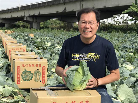 前嘉義副縣長吳芳銘近日化身賣菜郎。(圖片來源:臺灣“中時電子報”)