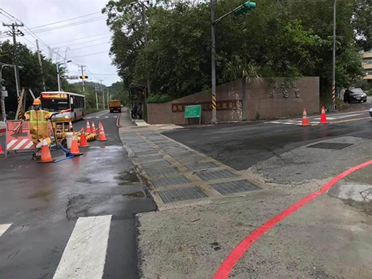 “連汽車都差點打滑!”孝德里長朱志偉表示,近期收到很多摩托車駕駛員抱怨,這里的井蓋太滑,很多人都不小心滑倒,之前和市府工務處與廠商反映時,對方說井蓋有防滑效果,但經過2個月來車流在此經過輾壓,防滑效果降低,連汽車都有打滑的情況,建議要用水泥井蓋比較好。