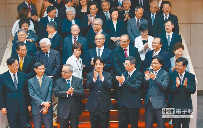 面對(duì)蔡英文元旦假期全力慰留,賴(lài)清德仍去意堅(jiān)定。圖為2017年交接典禮后,賴(lài)清德率時(shí)任“閣員”合影。(圖片來(lái)源:臺(tái)灣“中時(shí)電子報(bào)”)