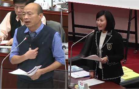 高雄市長韓國瑜(左)、國民黨高雄市議員陳麗娜(右)。(圖片來源:臺灣“中時電子報”)