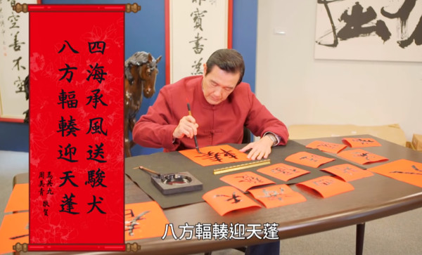 中國臺灣網1月20日訊 據臺灣“東森新聞云”報道,農歷春節將至,島內政治人物紛紛發出春聯賀新年。寫得一手好字的前臺灣地區領導人馬英九,每年春聯一向受到民眾歡迎,這次的“四海承風送駿犬、八方輻輳迎天蓬”春聯才剛開放索取,10萬份僅一個下午就被搶光。