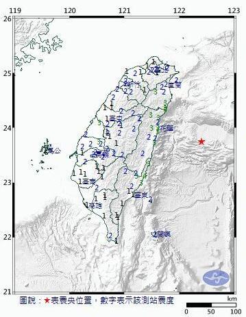 中國臺灣網1月30日訊 據臺灣“中時電子報”報道,今天(30日)下午13點21分,臺灣東部海域發生規模5.7級地震,全臺有感,地震深度37.8公里,最大震度臺東成功鎮4級、花蓮3級、宜蘭3級、新竹3級、云林3級、彰化3級、南投2級、臺中2級、臺北2級、嘉義2級、桃園2級、苗栗2級、高雄2級、屏東2級。