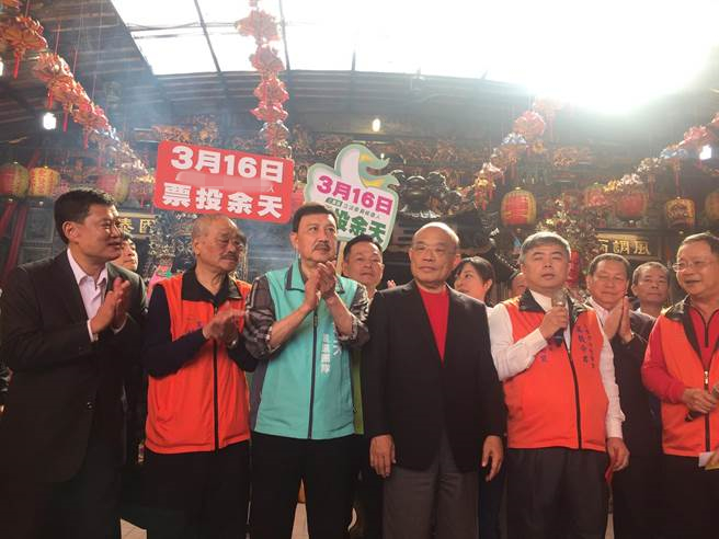余天頻頻請來重量級大咖力挺,昨上午才在板橋和蘇貞昌合體,下午蔡英文也特地安排行程至三重宮廟為他站臺,今蘇貞昌再次來到三重圣賢宮與他一起發紅包,“府”“院”黨總動員。