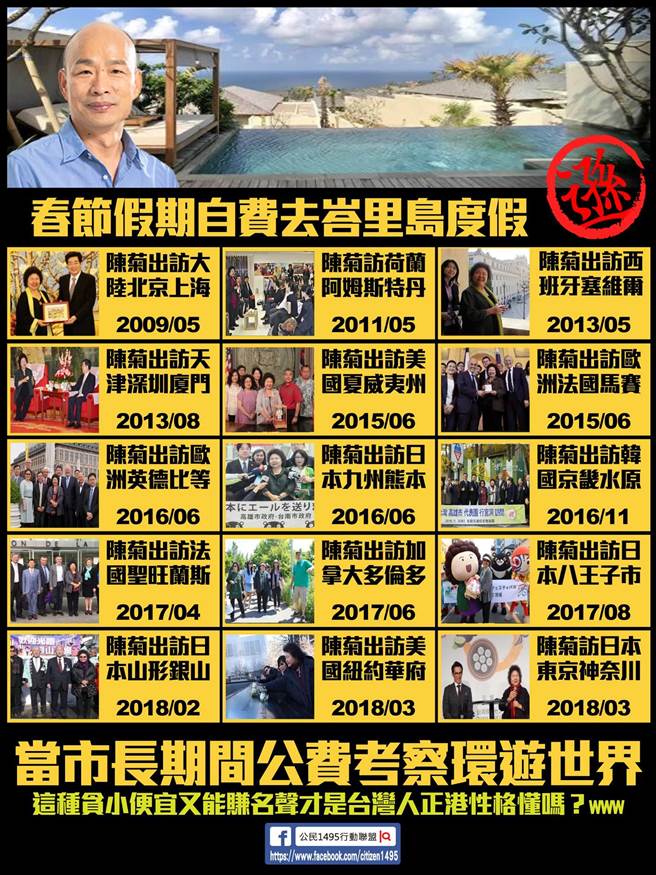對比陳菊公費出境記錄 韓國瑜自費去巴厘島遜爆了!