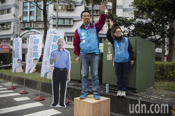 新北三重“立委”補(bǔ)選 鄭世維請(qǐng)出韓國(guó)瑜人形立牌拜票