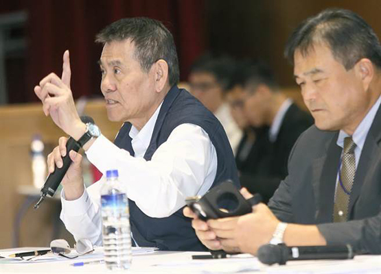 臺(tái)灣華航擬停招外籍機(jī)師2年,圖為臺(tái)灣華航總經(jīng)理謝世謙(左)。(圖片來源:臺(tái)灣“中時(shí)電子報(bào)”)