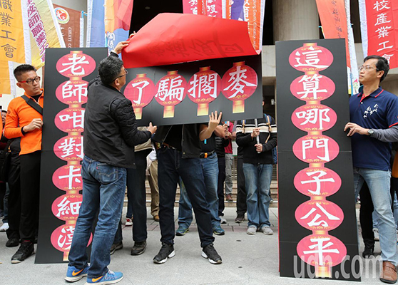 “全教總”指出,2017年8月9日公布的“公務人員退休撫恤資遣法”“公立學校教職員退休資遣撫恤條例”卻將補償金做切割處理,對于在2019年6月30日以前退休者,可以全部領取,如果是月領而未領足的余額還可以補發,反之,在2019年7月1日之后退休者,一毛錢都領不到。“全教總”強調,這導致同時擔任公教、年資相同者,卻因為年齡不同而有的可以領,有的領不到,“這種切割的做法已經是不公平的處理。”