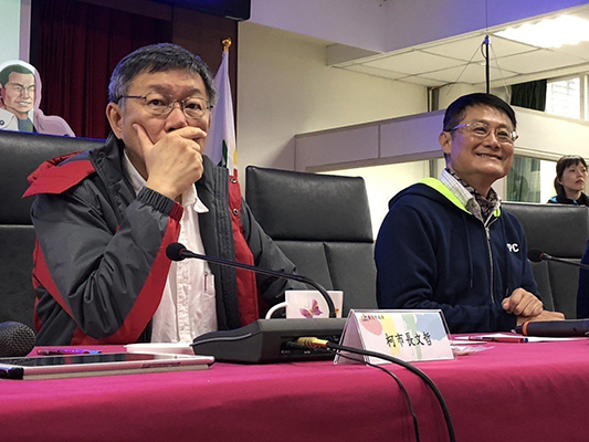 新北市長(zhǎng)侯友宜因腰傷無(wú)法出席“柯侯會(huì)”,改由副市長(zhǎng)陳純敬(右)代理。(圖片來(lái)源:臺(tái)灣《聯(lián)合報(bào)》)