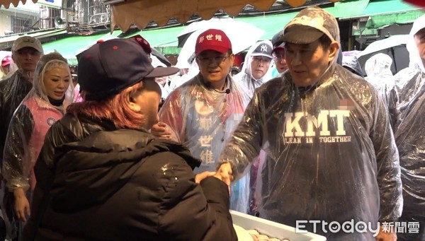 馬英九今晨陪同三重區(qū)“立委”補(bǔ)選候選人鄭世維前往龍門市場掃街拜票。(圖片來源:臺灣“東森新聞云”)