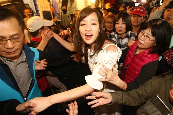 高雄市長韓國瑜女兒韓冰昨晚(13日)陪國民黨候選人鄭世維到新北市三重區三和夜市掃街拜票(圖片來源:臺灣“中時電子報”)