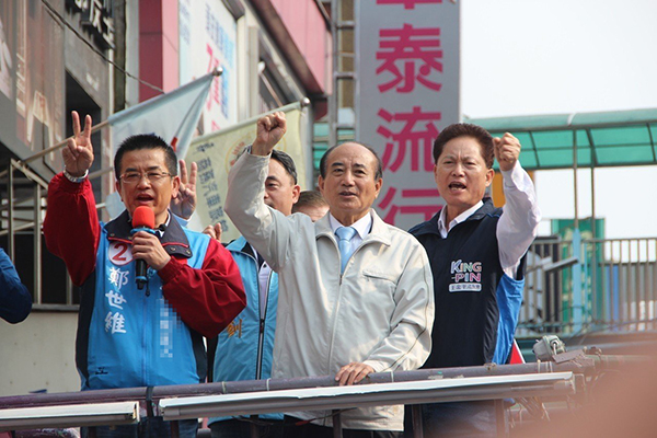 臺當局前“立法院長”王金平(中)今日率“王金平之友會”民眾到國民黨新北市三重“立委”補選候選人鄭世維競選總部,為鄭世維造勢。“王金平之友會”新北總會總會長、前“立委”盧嘉辰(右)也出席。(圖片來源:臺灣《聯合報》)
