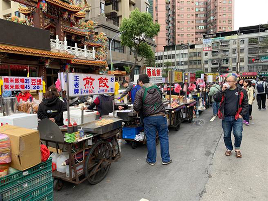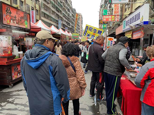 國民黨鄭世維三陽路會場中午時分已聚集上百攤位,現場人潮洶涌,場面熱鬧。(圖片來源:臺灣“中時電子報”)