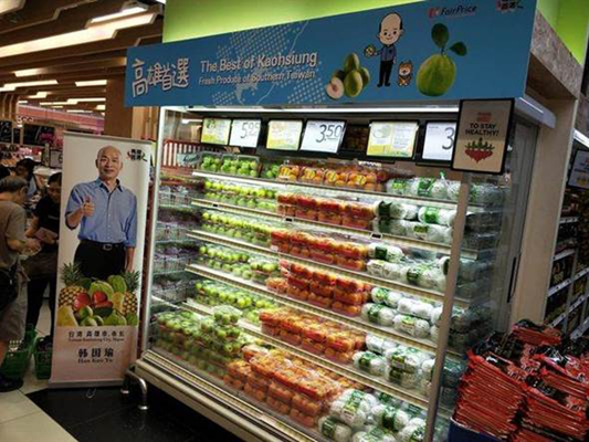 中國臺灣網3月20日訊 據臺灣“中時電子報”報道,高雄市長韓國瑜上任80余天,順利與馬來西亞糧食進出口總商會簽下一億元(新臺幣)訂單、與新加坡最大超市FairPrice(職總平價合作社)簽下3年通路采購合約,昨日(19日)更與廣東潮州連都貿易公司簽下價值10億(新臺幣)農漁產品采購案。佳績不斷刷新的同時,有臺灣網友發文,驚呼竟在新加坡超市看見“高雄首選”專區,還有韓等比立牌。