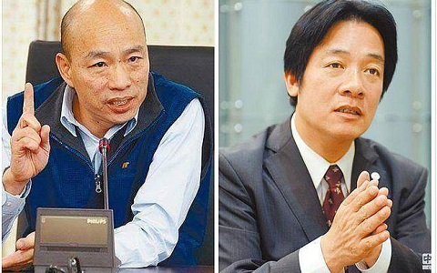 高雄市長韓國瑜(左)、臺當局前“行政院長”賴清德(右)。(圖片來自臺媒)