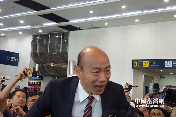 高雄市長韓國瑜今天從廈門返回高雄,在機場被民眾簇擁。(中國臺灣網(wǎng)發(fā))
