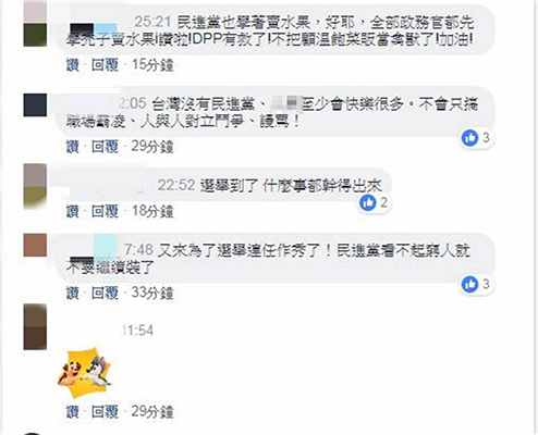 不過,對于蔡英文的這一舉動,網(wǎng)友卻表示,“選舉到了才想起農(nóng)民了,平常他哪管農(nóng)民死活呢”“又來了!選舉到了開始開支票騙選票”“花六萬(新臺幣)請專人主廚煮飯的人,會在乎基層農(nóng)民的生活?你在騙誰啊”“多為農(nóng)民做事吧”。ㄖ袊_灣網(wǎng) 賈若瀾)