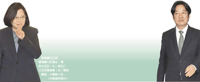 民進黨內初選協調12日截止,蔡英文(左)與賴清德(右)隔空喊話,火藥味十足。(圖片來源:臺灣“中時電子報”)