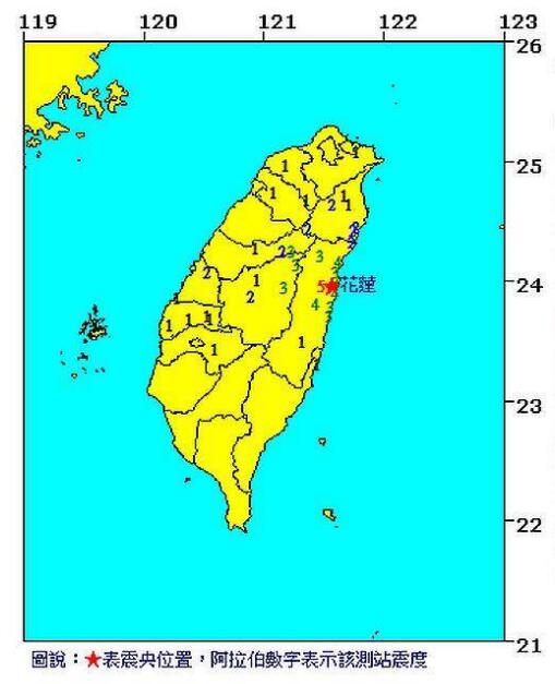 臺灣花蓮清晨發(fā)生4.7級有感地震 不少民眾被搖醒